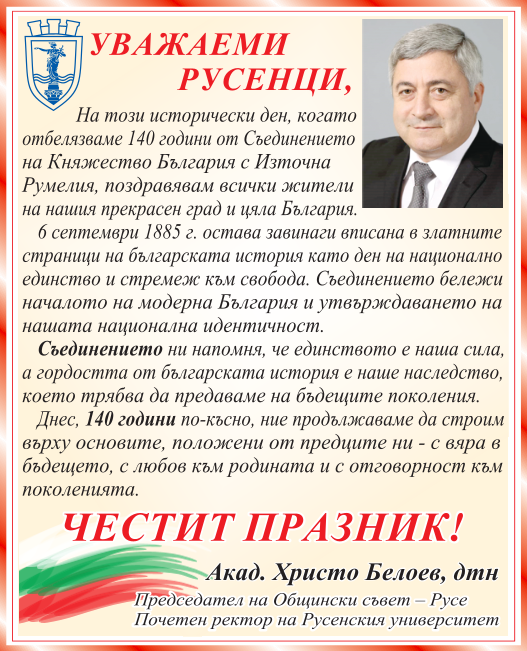 Сред официалните участници в … Подробно “140 години от Съединението: Русе отбеляза историческата годишнина с тържествена церемония”